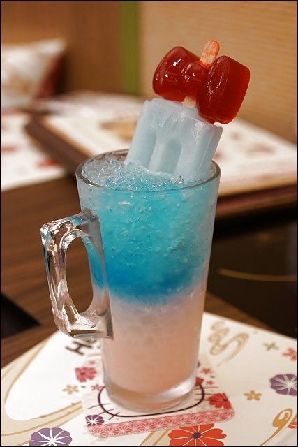 飲料我點了蜜桃KITTY冰茶180元,附了很可愛的吸管套,成人版的夢幻藍柑橘,主要有蘇打口味的冰棒,底下飲料是含酒精的調酒,不過沒給吸管,不方便喝。
