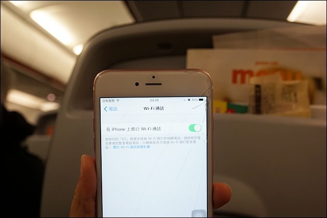 對了,在飛航模式下,若是機上有提供Wi-Fi,也能在飛行時接聽來電哦,不過我坐廉航啦,連水都要花錢,哪有可能給我Wi-Fi用啦,想太多。