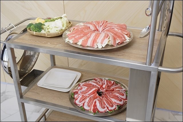 每桌都會有專屬的餐車,食材一盤一盤都會放在這邊等著下鍋,用餐客人不用擔心桌上沒位子好好吃飯。
