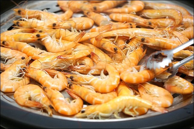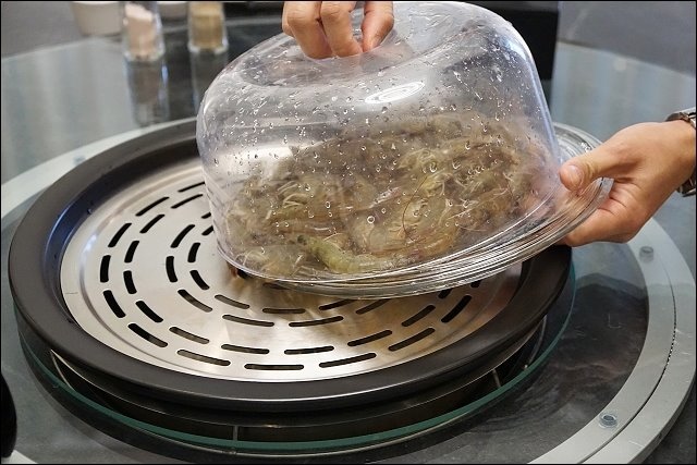 蝦子很快就蒸熟了,看這紅通通又很有彈性的蝦,大家等不及服務人員盛盤,每雙筷子都進攻啦,蝦沒有斷頭或是肉粉粉的問題,全都好新鮮呀,同場有個很會過敏的朋友都忍不住吃了好幾隻!