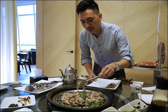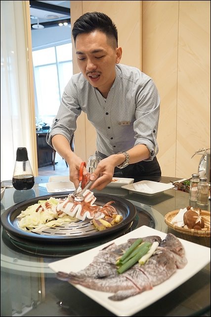 一樣都會由帥氣的服務人員桌邊服務,用大剪刀剪成小塊,再裝盤。
