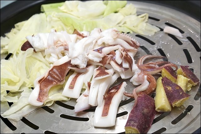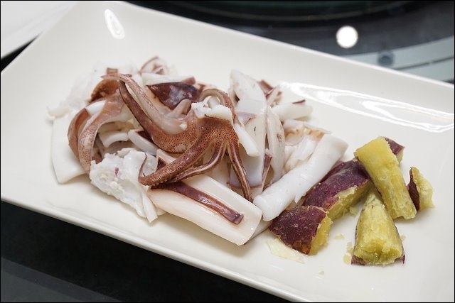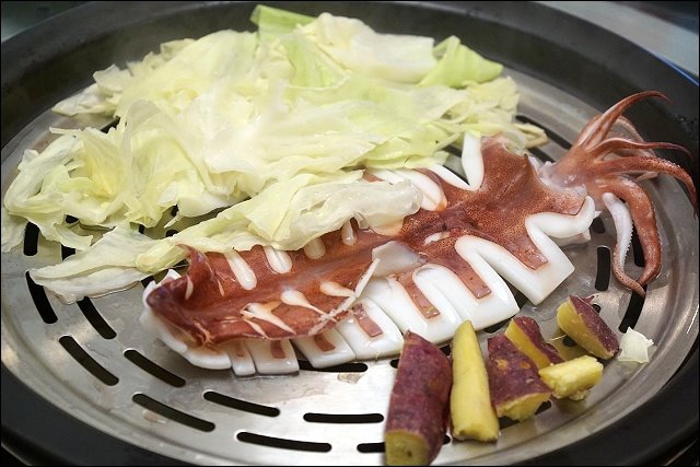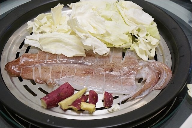 再來這透抽很大隻,店家表示雙人套餐的透抽會比較小隻,這支透抽處理的滿乾淨的,跟高麗菜還有蜜地瓜一起下鍋,好鮮!