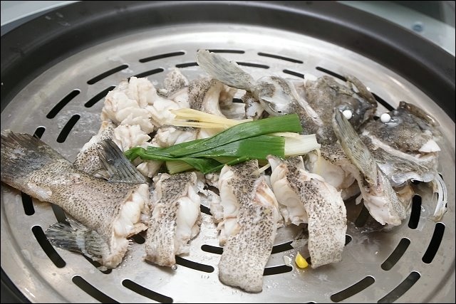 鮮活石斑是最後一道蒸料理,完全沒有魚腥味,這條魚運動量應該很夠,肉質吃起來有嫩又滿有彈性的,可惜吃到這裡已經超飽了,大概有半條直接打包回家!