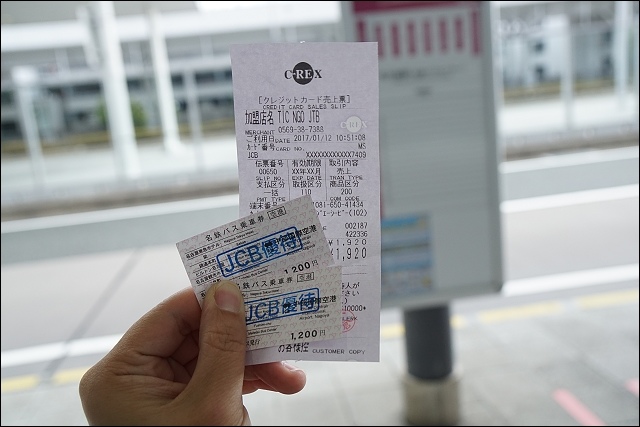 中部國際機場進名古市區,我們選擇一路坐到飯店門前的機場巴士,單程原價1200,刷JCB卡直接打八折!單程直接千元有找,比坐名鐵再轉地鐵方便又方便。
