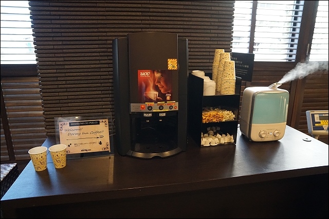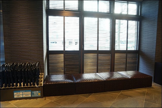 進飯店有沙發區,另有愛心傘,若碰到下雨可以免費使用,但記得要還哦!有免費UCC咖啡可以喝,我們一早出門跟下午回飯店都喝的到!