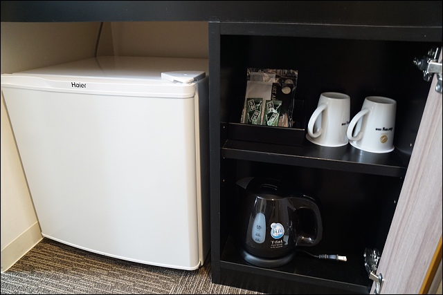 下方是冰箱跟茶水備品,冰箱內有二罐天然礦泉水,每天都會補二瓶!