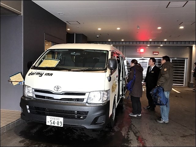 名古屋dormy inn premium飯店早上11點前都有免費接駁車到名古屋車站哦!像我們本來是打算走到榮站去搭巴士往長島溫泉,剛好整點九點飯店有接駁車,我們就坐去名古屋站去搭車,名古屋站的班次最多,交通很方便!