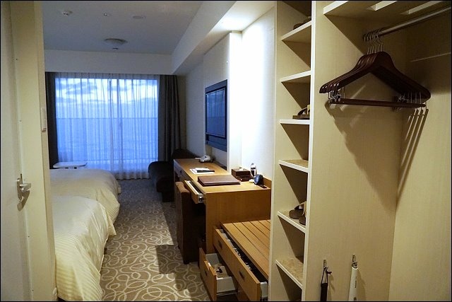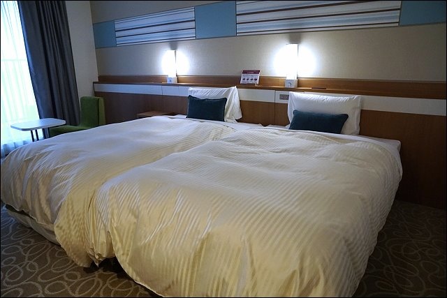 筆記→飯店高級又舒適,房間從47平米起跳(約14坪大),比市區大二倍多都空間,帶小孩的家庭旅遊很適合,房間有客廳、餐廳、小廚房,不用出門在房間就很享受,另外飯店地點很好,走路3分鐘有24hr超市、西松屋及Convention City賣場。