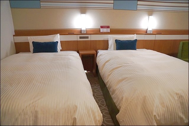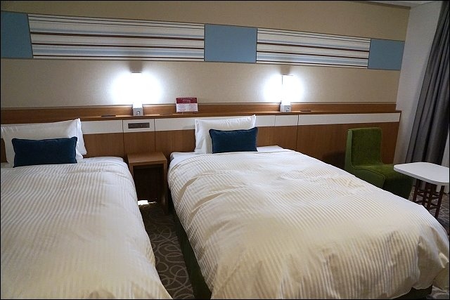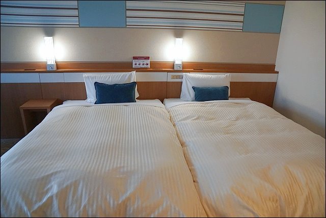 飯店門前旁有機械式代客停車,入住房客免費停車,我先在Agoda訂好房間,一晚雙床房11,000日幣二大一小含早餐,相當超值(查房價)。