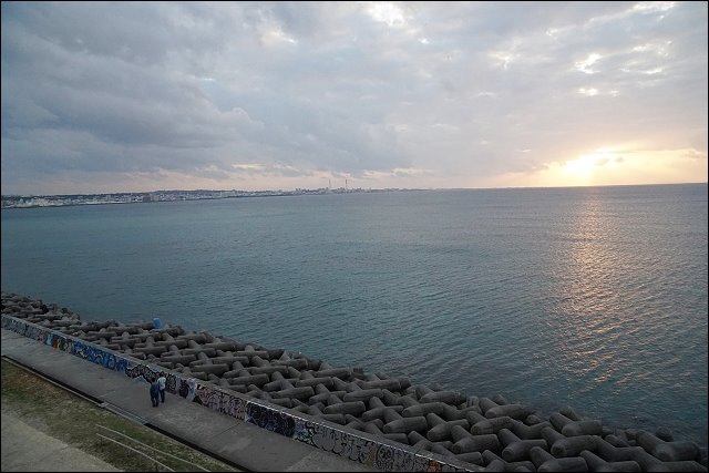 在房間就可以賞夕陽美景,聽海浪的聲音!揪阿弟出門看夕陽散散步,他竟然回我,在房間看就好了啦,實在很會享受!不少人會特地到恩納區的sunset beach日落海灘看日落,氣氛超好,好適合約會,我們在房裡不用吹風就有美景可賞,的確可以在房裡悠閒,這就是住這裡的好處啦。