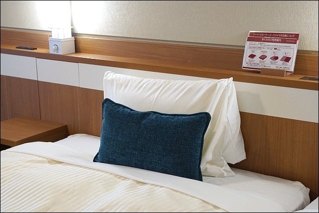 床跟枕頭都很舒服,還另外有顆抱枕,床頭也有插座及夜燈。