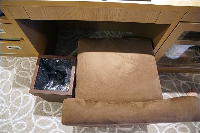 書桌空間很大,我還可以開電腦收發email,整理照片!桌上有二個插座,椅子也挺舒服的,電視小了點就是。
