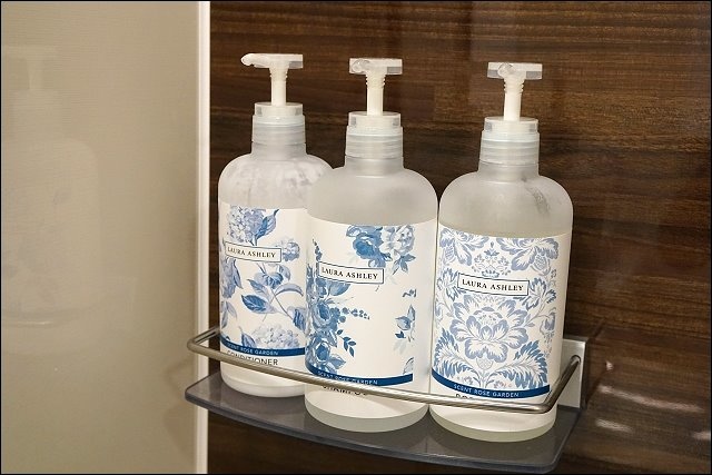 浴室不小耶,備品全都給足四人份,洗澡備品是LAURA ASHLEY品牌。