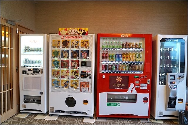 泡完湯出來有一區可以看風景,投幣式按摩椅讓你桑到最高點!飲料機選擇也很多,可惜最右邊的牛奶全都賣光來不及補@@