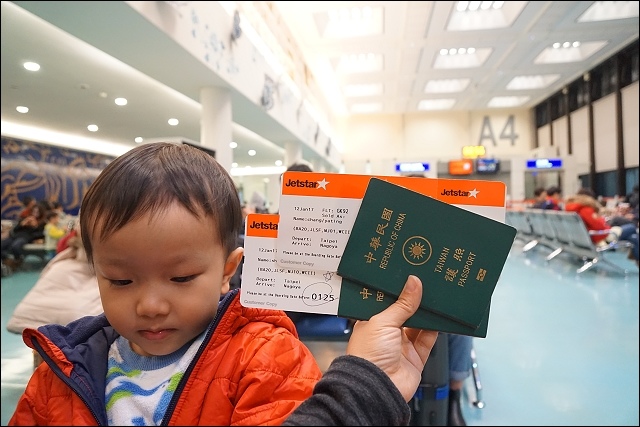 捷星台北飛名古屋出境是在桃園第一航廈6號櫃台,遞出護照不用出示機票訂單資料,地勤小姐很快的幫我們掛完行李,領到的登機證不是薄薄的一張咧!A4登機門有電梯可搭,不用拿推車又抱小孩走下樓,還有,提醒大家上機前記得先在登機室這邊裝好水或熱水哦,這樣要是小朋友要喝奶就有的泡。
