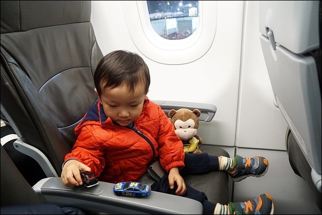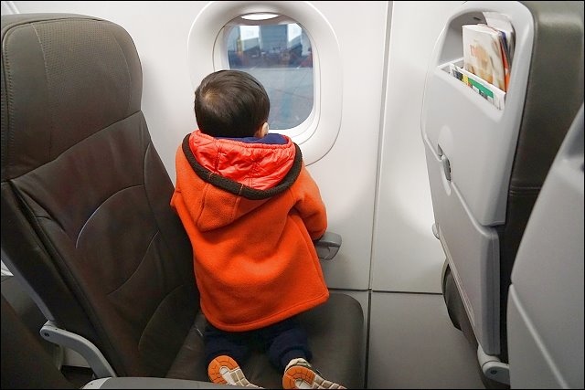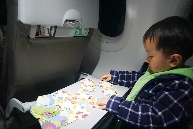 因為帶小孩,所以會選靠窗的位子,這樣可以讓他看看窗外的飛機及夜景,比較不會歡。
