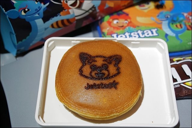 單點一個捷星日本線限定的紅豆銅鑼燒來配,送上來的時候有點冰,若想吃熱的,可以請空姐加熱,熱熱的吃很暖,甜滋滋的。