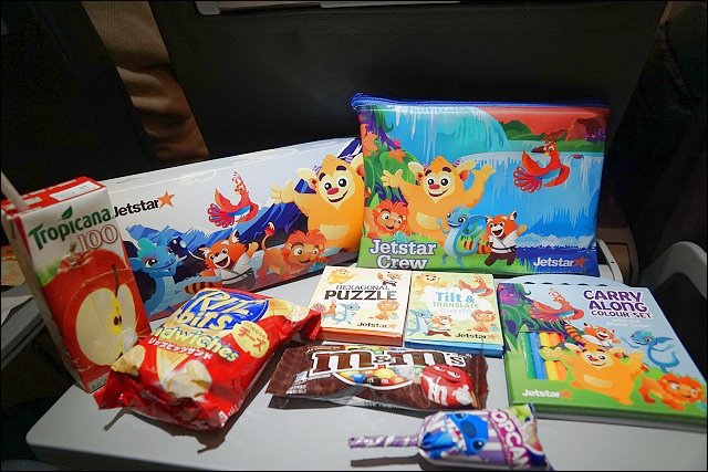 起飛後,我們精神很好,睡不著覺,看看雜誌聊聊天,很快的到了空姐上菜時間,以往我搭廉航,都還要拿機票給空姐確認,他們才會送餐,要知道,帶小孩出門大包小包的,坐到位子票根都不知塞哪了(每次我都要找很久@@),捷星的流程就做的很好,空姐手上有乘客訂餐的明細,不需要乘客再出示機票票根,就會正確把訂的餐點送到桌上,加分!