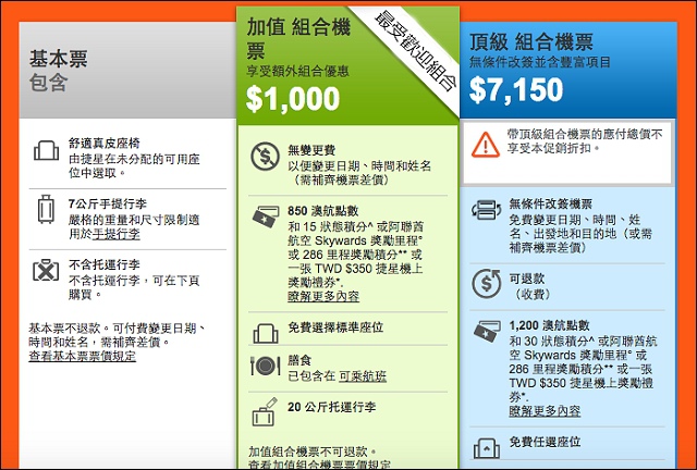 廉價航空的收費是使用者付費的概念,你若上機就睡,不用毯子不用喝水,只要單買機票最省,但若是像我很愛買,隨身行李七公斤不夠用,強烈建議買機票時直接加值買組合機票最划算,加一千塊含標準座位選位、機上餐、20公斤托運行李,及點數,若是單樣行前加買肯定費用比較高,光20公斤托運行李,若到機場櫃台才加買就要一千塊,捷星訂票省錢小撇步整理請看這裡:http://www.jetstar.com/tw/zh/saving-tips。