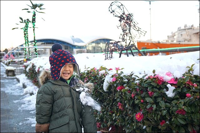 難得遇上強烈冷氣團,名古屋市區就下起大雪還有積雪,可以打雪仗好興奮,名古屋水族館也是很適合親子玩耍的好景點。
