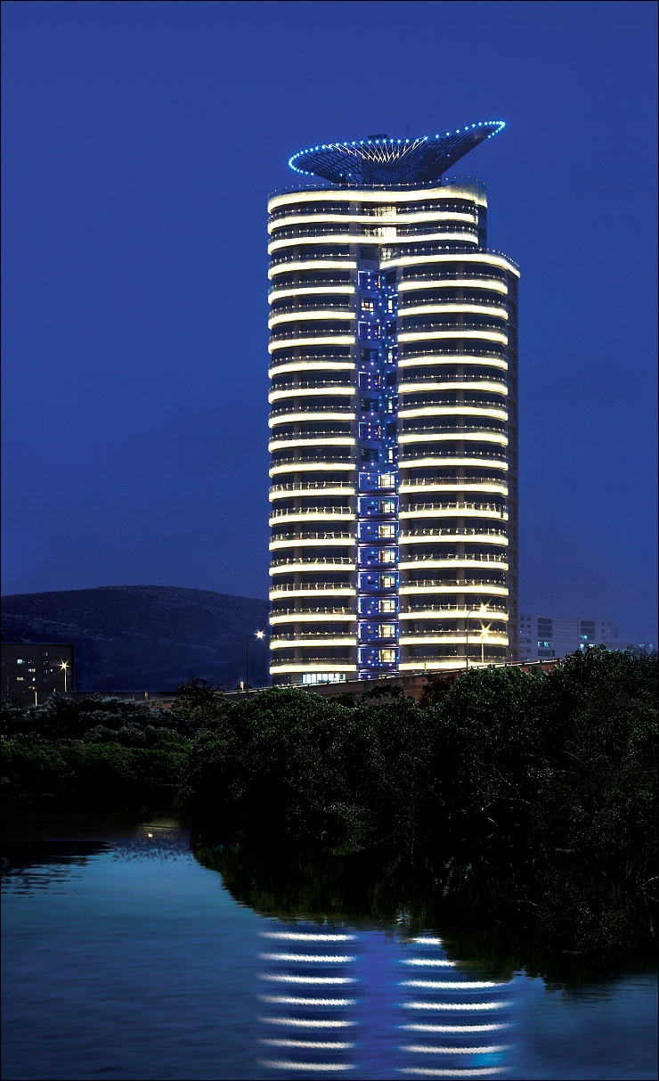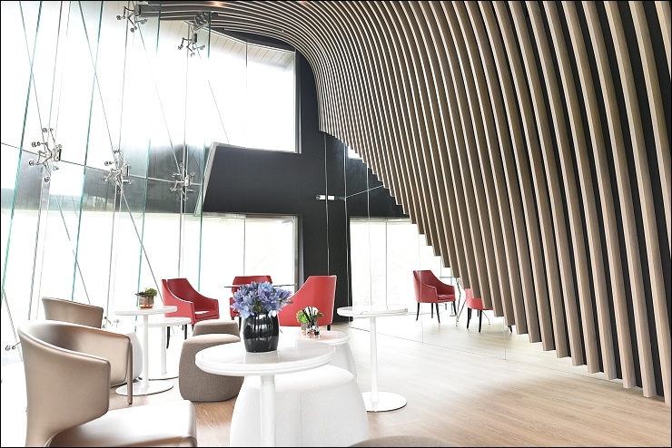 假日沿著水岸騎單車往安坑陽光運動公園和碧潭方向前進,都看得到河岸第一排的富裔河仿生建築的貝殼流線外觀,晚上還會搭配整體燈光計劃打上美麗的燈光。
