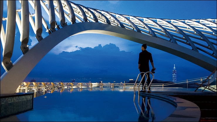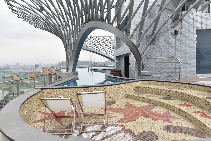 頂樓無邊際泳池旁特地設計溫泉池,有客來訪可以相揪一起泡湯。