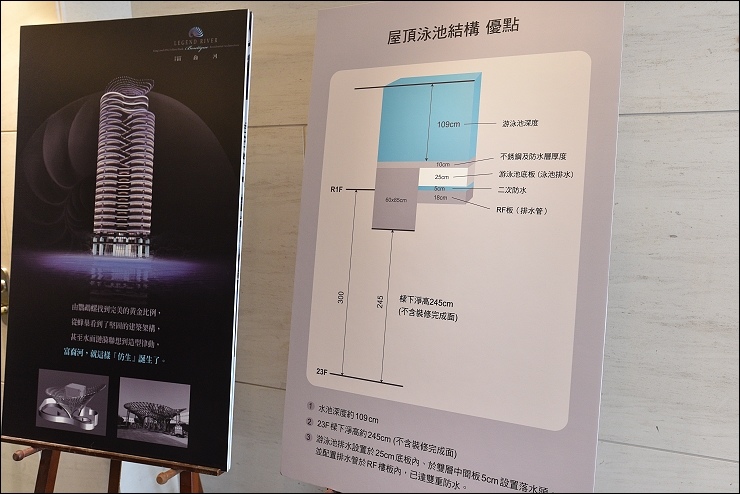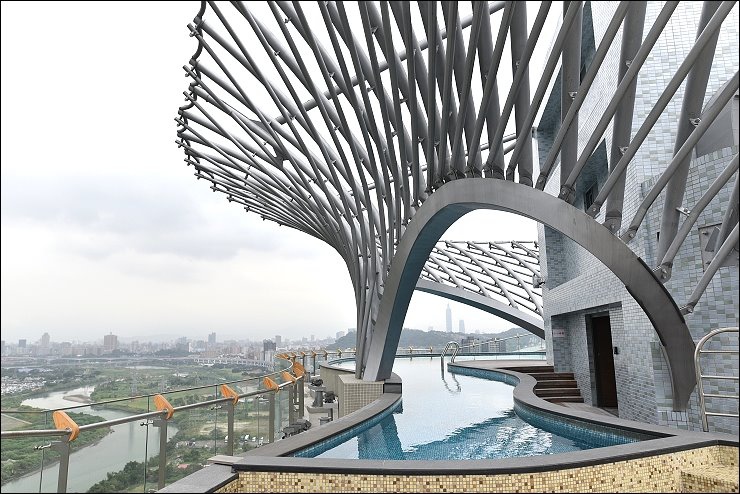 這次參觀富裔河建案,感覺最強大的公共空間應該就是頂樓的無邊際泳池,住戶可以直接在這兒欣賞台北101跨年煙火,而且方向還剛好不會被煙火的煙霧擋到,煙火放多久就可以看多久!