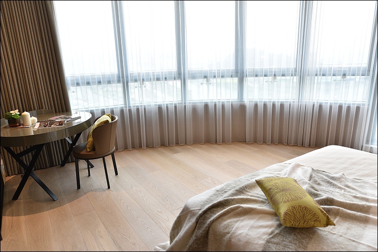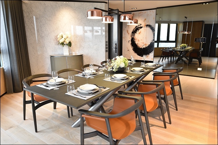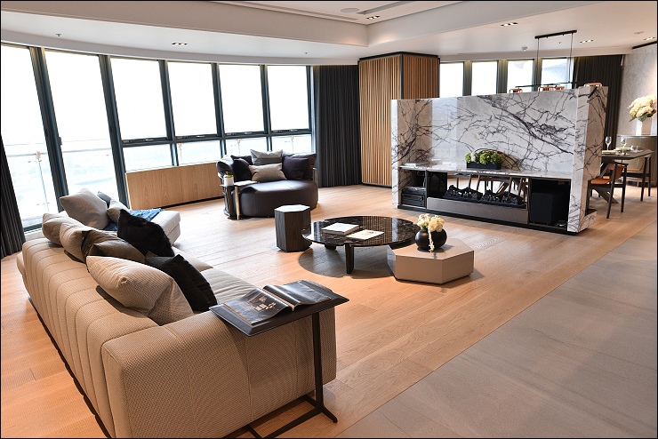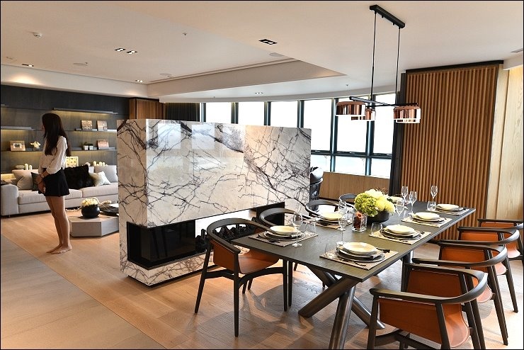 國礎富裔河一層只有二戶雙併,最頂樓二層只有單純兩戶雙拼樓中樓(已完全售出),是全棟單純雙併95坪至175坪大坪數大格局的水岸豪宅,這種房子看完腦中只浮出一個感想,就是有錢真好!!
