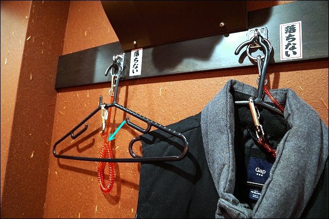 一蘭拉麵的座位就像K書中心那樣一格一格的,座位後方可以掛衣服,這裡還特地在衣架上弄一個掛勾,防止衣架掉落地上,有不會落榜的含意,會合格啦!