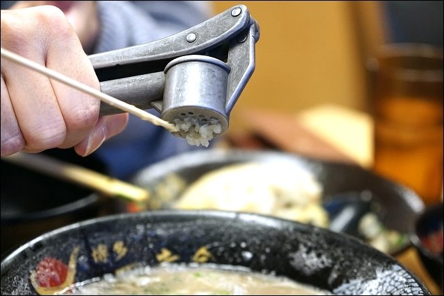 喜歡蒜味或是辛口高菜的朋友,建議先吃幾口原味,再加這些,蒜頭已經剝好,喜歡吃蒜味的朋友,可以用竹叉子把蒜頭放到夾碎蒜頭的工具裡,加一顆就夠,保證蒜味滿口。