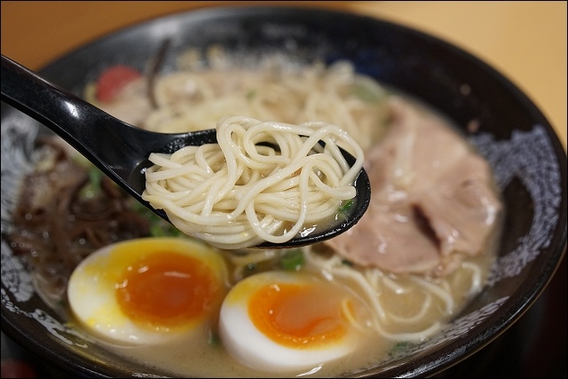 我們吃店家最受歡迎的溏心蛋豚骨白湯,一上桌就被這有好多泡泡的湯頭所吸引,要知道豚骨湯頭要煮成這樣,可是需要長時間及真功夫下去熬煮才辦的到,要能站上廚房下麵煮湯得花上五年的學習才行。一幸舍店內好幾個大湯鍋,營業時間不停火,它不是讓整鍋老湯一直滾,而是會持續在老湯內加入新湯下去煮所創造出來的美味。