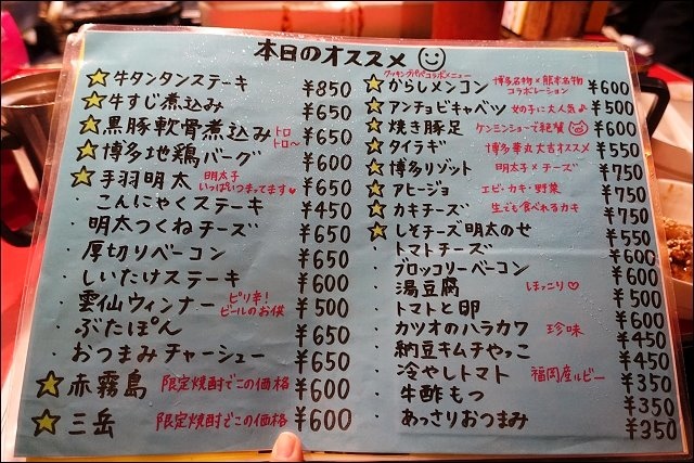 菜色超級多,因為我們已經吃過晚餐了,點個幾樣小菜就好,店家有前三名人氣菜單,是博多的特色料理。
