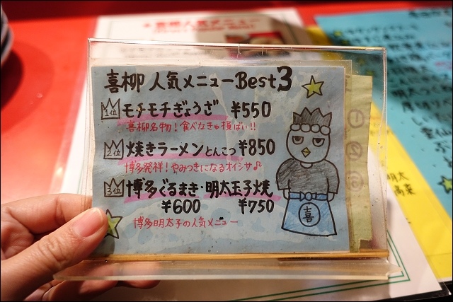 朋友說要吃喜柳,店家生意很好,屋台的座位沒有很多,需要排隊等候,排隊時隔壁的日本男生還湊進來聊天,我問他推薦博多的拉麵,他說,就是屋台拉麵!!