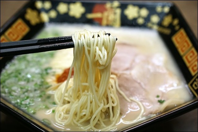 這邊的麵條特別長,是希望吃麵的客人可以細細品嘗它竹日心戈日美味,感受它帶來的幸福感。 對了!若麵吃完還想再吃,記得留一些湯,可以付費加麵條,這是博多拉麵的特色。加麵條的方式就是把貼有日文加麵字樣的小碟子放在桌面上的按鈕,鈴聲響起後服務人員就會拿走碟子,隨後加麵,來一蘭吃拉麵不要錯過這獨特的鈴聲。