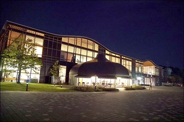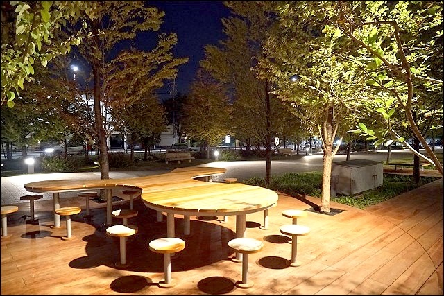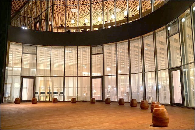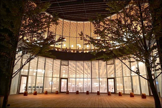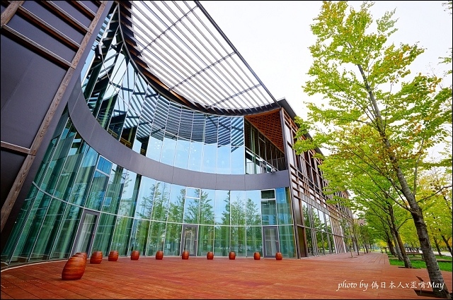 特別跟同行的歪嘴may調了三張白天的照片(當時我還在睡懶覺,更多照片可以連到她的遊記),白天跟夜晚感覺又不一樣,綠色植物反射在玻璃帷幕上,呼應建築物的名稱(大家的森林)!尤其裡裡外外都被溫潤的木頭所包圍,開放自然感十足,建議大家三四點來一直待到傍晚最棒!