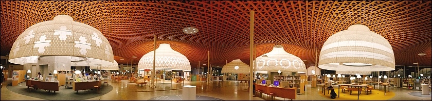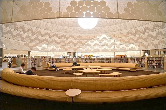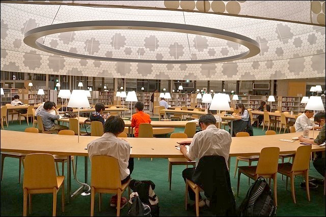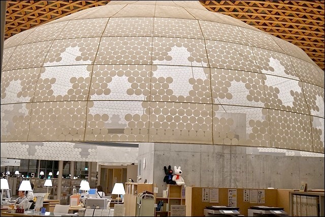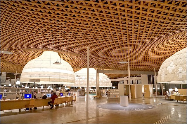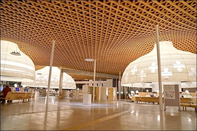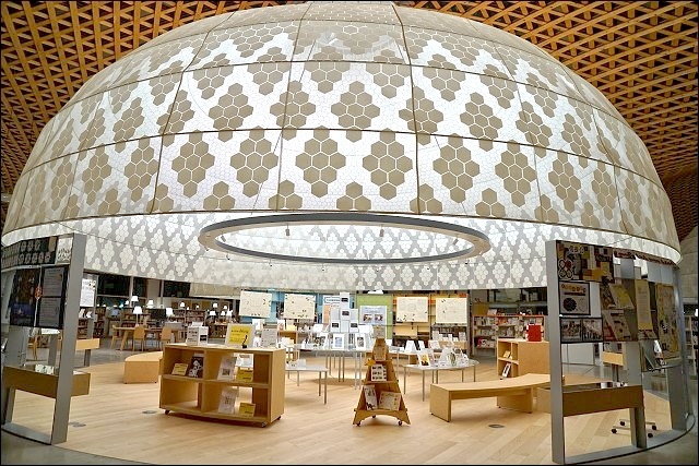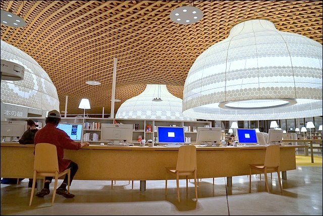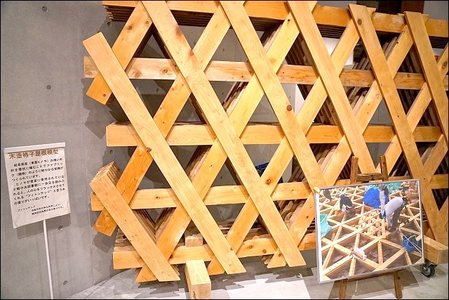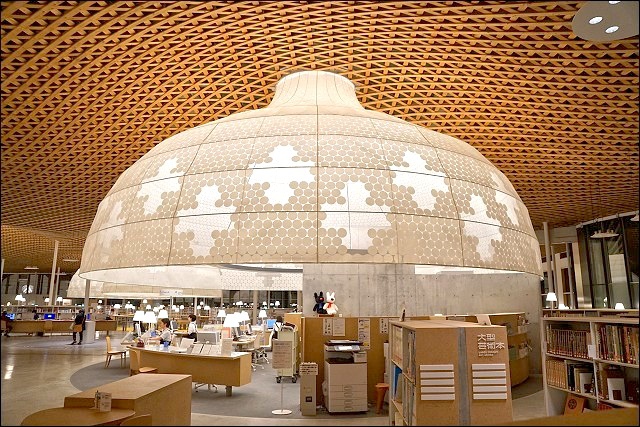圖書館裡面有便利商店真的很方便!如果唸累了想休息,下來買個零食飲料都可以轉換一下心情啊~~這裡有展示屋頂木造格子的模型,上去二樓真的可以發現這裡投注了很多心血,很不得了的設計,難怪是出是大師之手。