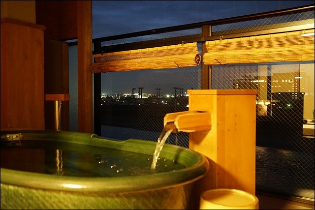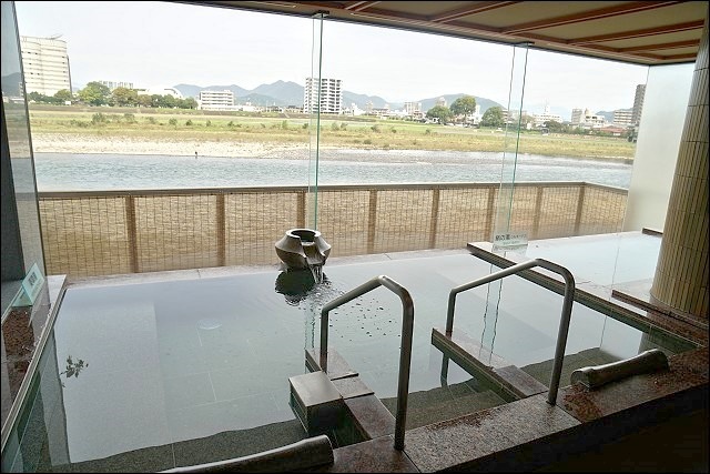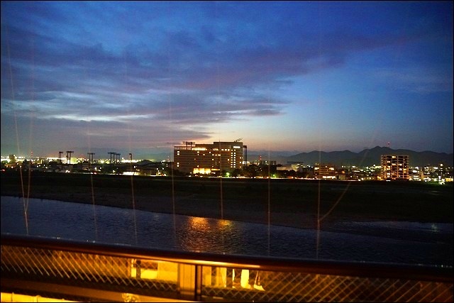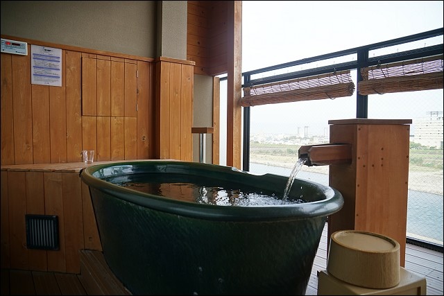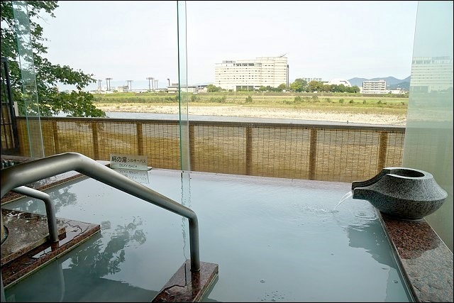 我們就住在長良川的旁邊,視野很好,陽台有設置信樂燒的展望露天風呂,算是比較高階的房間(印象中當時一個人的房價是18,000日元),害羞的話自己一個人在這邊泡澡也很爽!