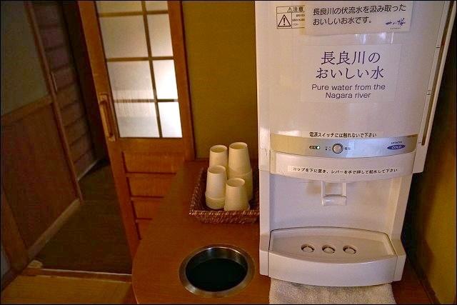 泡完湯記得來一杯長良川的優質伏流水補充水份,害羞的室友一早有起來泡湯。
