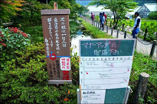 這裡其實原來只是根道神社參拜道路旁的小小池塘,並不大,水也淺淺的,但池水卻非常清澈見底,水底都可以看得一清二楚。