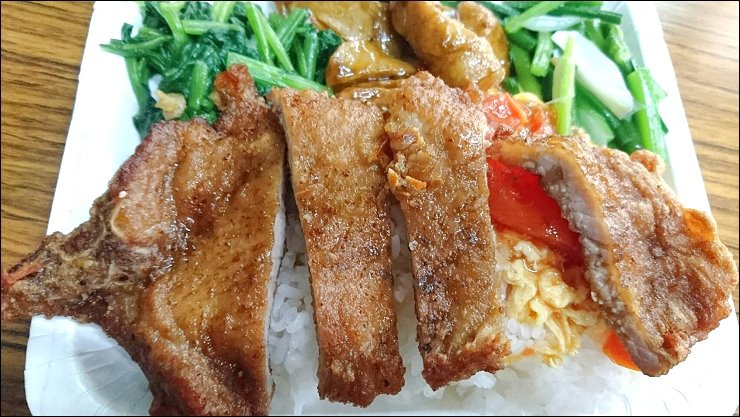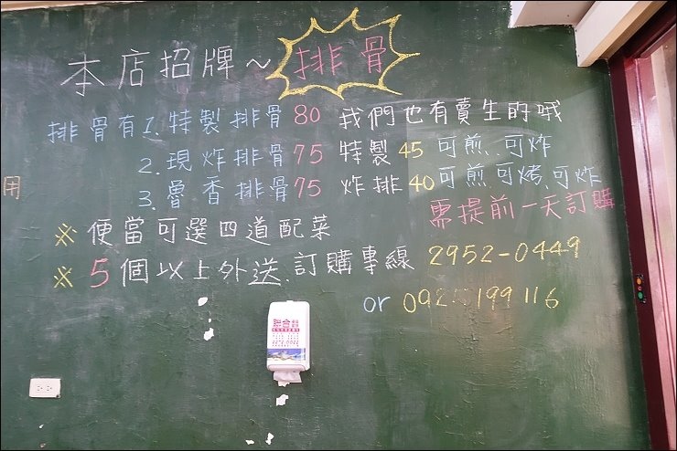 排骨有炸的魯的還可以選煎的,另外特製版才是殺手級菜色!五顆便當就有提供外送服務,建議提早打電話預約。