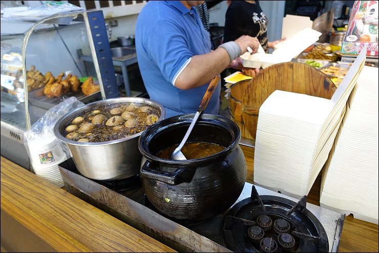 對了,店家會問你白飯要不要加滷汁,要不要辣蘿蔔,蘿蔔還滿脆的,微辣帶鹹很下飯。