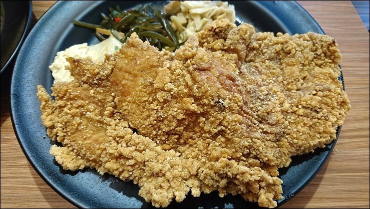 大雞排真的有夠巨無霸,盤子已經夠大了,雞排竟然可以把盤子整個遮住!!我們雖然不是吃到熱騰騰現炸的,但口味還不錯,當然現炸表現會更好。