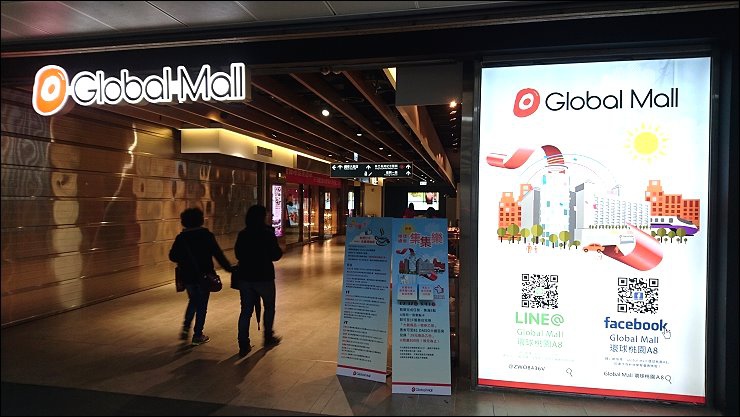 A8長庚醫院站出口就是GLOBAL MALL環球購物中心林口店,廊道有飲食休憩區和充電座,有貼心喔!