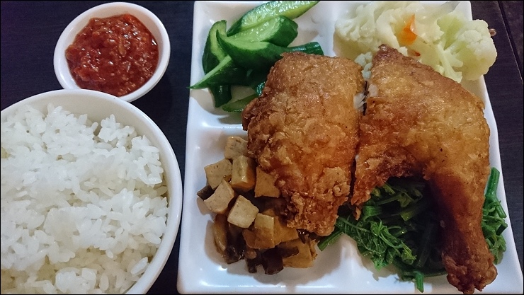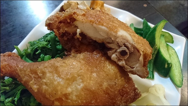 網友留言推薦的搶手雞腿飯,雞腿就真的很合味啦!吃起來像是先滷後炸,一般雞腿便當比較少這種口味,喜歡的人應該會很愛。