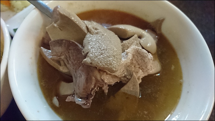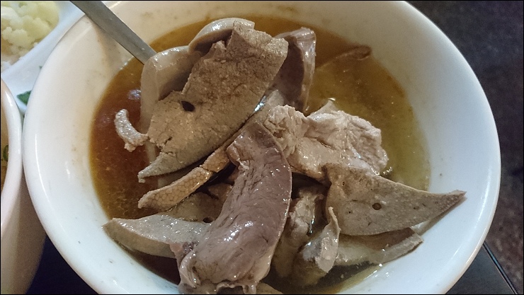 蒜味雞油乾麵線(雞油)50元、麻油綜合湯(腰花、豬心、赤肉、豬肝)130元,麵線好吃!麻油清湯清淡卻有味。