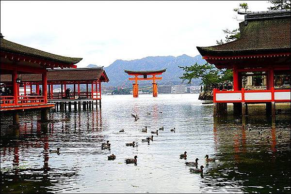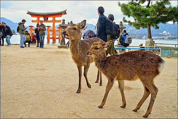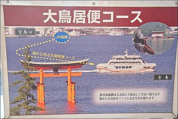 要前往宮島,山陽新幹線從東京車站到廣島車站約3小時50分鐘,從新大阪車站出發約1小時15分鐘,若從廣島機場坐機場巴士到廣島車站約須50分鐘,再從JR廣島站搭乘JR山陽本線到JR宮島口站(約28分鐘),然後步行5分鐘到宮島口碼頭,乘坐JR西日本宮島渡輪約10分鐘到達宮島碼頭,算一算至少需要花二個小時在交通上。僅管如此奔波,當天還是看到很多金髮碧眼的阿兜仔不遠千里來到這裡,因為這裡可是被列為世界遺產哩!對了,持JR PASS可以免費搭船喔,坐船的時候,記得到右側甲板卡位,JR航線是最靠近紅色大鳥居的路線,另一家雖然比較快但無法靠那麼近。