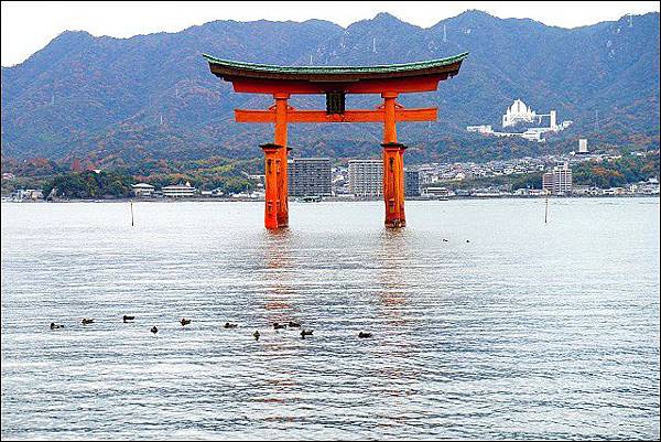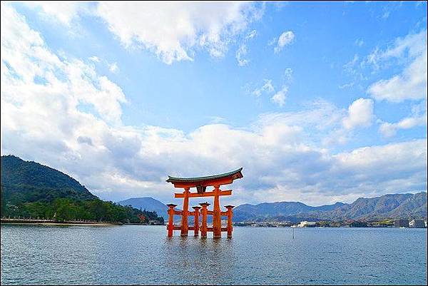 這次一樣採右去左回的路線,先往右邊靠海的路段直搗紅色大鳥居跟嚴島神社,回來再慢慢逛表參道商店街、町家通等山邊古道。紅色大鳥居有漲跟退潮的時間,想要觀賞那一種景色記得看好時間再來,大部份早上或晚上來有機會可以看到水上大鳥居,凌晨跟下午則會遇到退潮之際,可以直接下去走,親近或碰觸大鳥居,至於高16m、重60噸的紅色大鳥居聽說是沒有打地基的,但為什麼不會被沖走,是因為在綠色屋頂的地方塞了很重的大石塊。