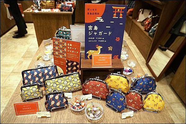 至於另一頭表參道商店街及町家通等山邊古街真的超好逛的,本團就在此時鳥獸散,大家都逛到不見人影了,還好現在只要有網路聯絡都很方便,我被這家日式小錢包給吸引進去,裡面結合了好多宮島與廣島元素的花樣,甚至是宮島店限定,梅花鹿、飯匙、楓葉都好好看,很有地域特色,要不是我家小錢包實在多到快滿出來,我真想買回家啊(現在看照片又後悔了XD)~~