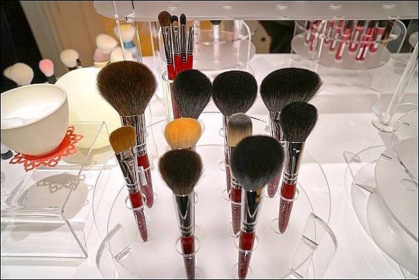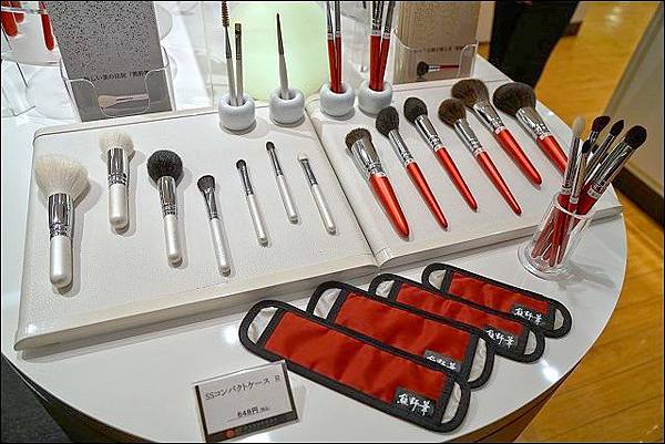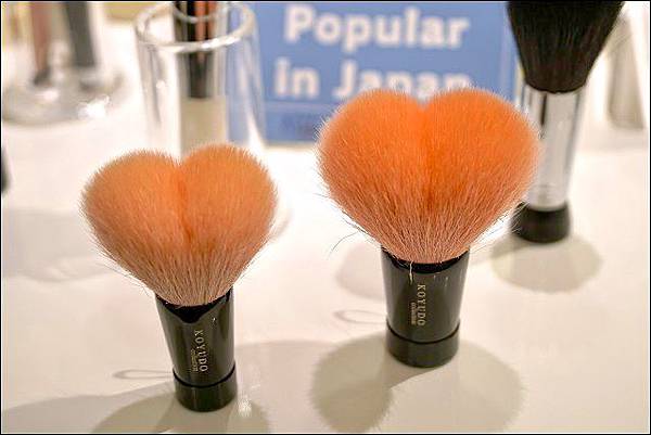 遠近馳名的熊野筆這裡當然有櫃,廣島市熊野町所生產的筆刷因為作工優良、品質佳而富有盛名,不論使用羊毛或松鼠毛等動物的毛,都不經修剪,並因應其功能需要選擇最適合的毛種來運用在刷具上,連我這種沒在化妝的人都聽過它嚮亮的名聲,這個像桃子造型的聽說是洗臉專用刷具!會不會太可愛了!我們有試用了一下,輕刷在肌膚上真的好舒服喔~~
