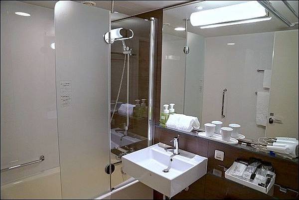 廣島的房間不小,還有附瓶裝水,浴缸旁加裝這片可活動的霧面玻璃板就有乾溼分離的效果,簡單不需大工程,學起來!以後如果要裝修浴室可以如法炮製。